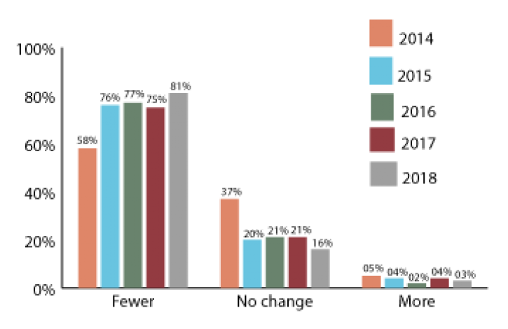 Slightly higher than findings from the last two years, about eight in 10 Ohio REALTORS are noticing fewer underwater homes on the market. More specifically, this year 81 percent of those responding to Ohio REALTORS April 2018 Housing Market Confidence Survey report fewer underwater homes on the market compared to last year. Last year the percentage was 75 and in 2015 the percentage was 77. This April's percentage is 23 percent higher than the 58 percent reported in April 2014.